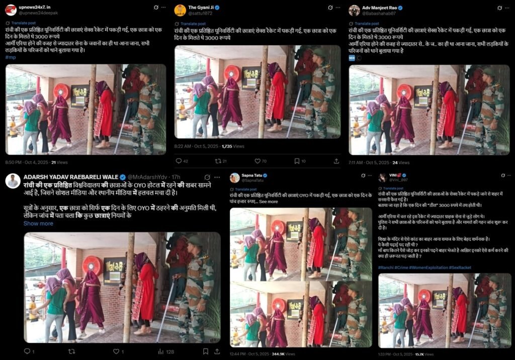 जब रांची लाइव की टीम ने वायरल दावों की पड़ताल शुरू की तो पता चला कि ये खबर बीते साल 14 अगस्त की है. इससे जुड़े एक खबर के मुताबिक 14 अगस्त, 2024 को रांची पुलिस ने रांची के अरगोड़ा स्थित होटल मौर्य में छापेमारी कर बड़े सेक्स रैकेट का भांडा फोड़ किया था. यहां से पांच लड़कियों और दो लड़कों को गिरफ्तार किया गया था. इसी घटना को कुछ शरारती तत्वों ने रविवार को रांची के किसी ओयो होटल से जोड़कर फैलाना शुरू कर दिया, जो देखते ही देखते सोशल मीडिया में तेजी से वायरल होने लगा.