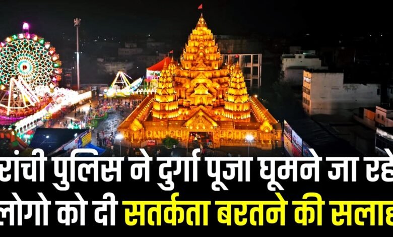 Ranchi. रांची पुलिस ने दुर्गा पूजा पंडाल घूमने जा रहे आम लोगो के लिए एडवाइजरी जारी की है। इसमें लोगो को पूजा के दौरान सतर्कता बरतने की सलाह दी गयी है। जारी एडवाइजरी में कहा गया है कि दुर्गा पूजा के दौरान सभी नागरिक आपसी भाईचारा बनाए रखें। किसी भी प्रकार की सांप्रदायिक तनाव उत्पन्न करने वाली गतिविधियों से बचें और सौहार्दपूर्ण वातावरण का समर्थन करें। सोशल मीडिया पर भ्रामक, तथ्यहीन या आपत्तिजनक पोस्ट, फोटो, वीडियो, और संदेशों को साझा करने से पूरी तरह बचें। ग्रुप एडमिन सुनिश्चित करें कि उनके ग्रुप में किसी प्रकार की गलत जानकारी या आपत्तिजनक सामग्री साझा न हो। किसी भी अफवाह पर ध्यान न दें और ऐसी जानकारी प्राप्त होने पर तुरंत पुलिस को सूचित करें।