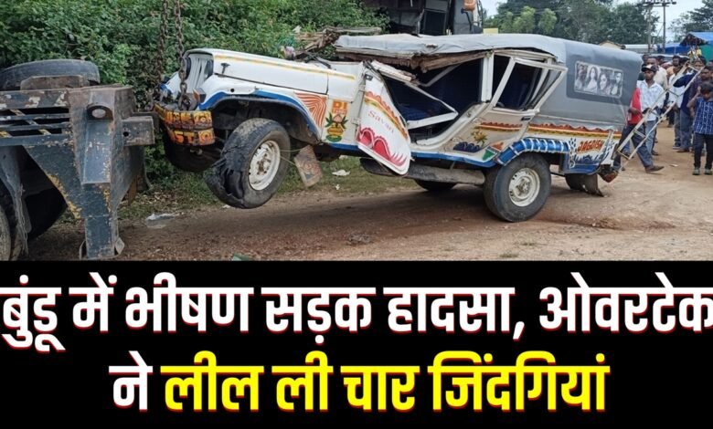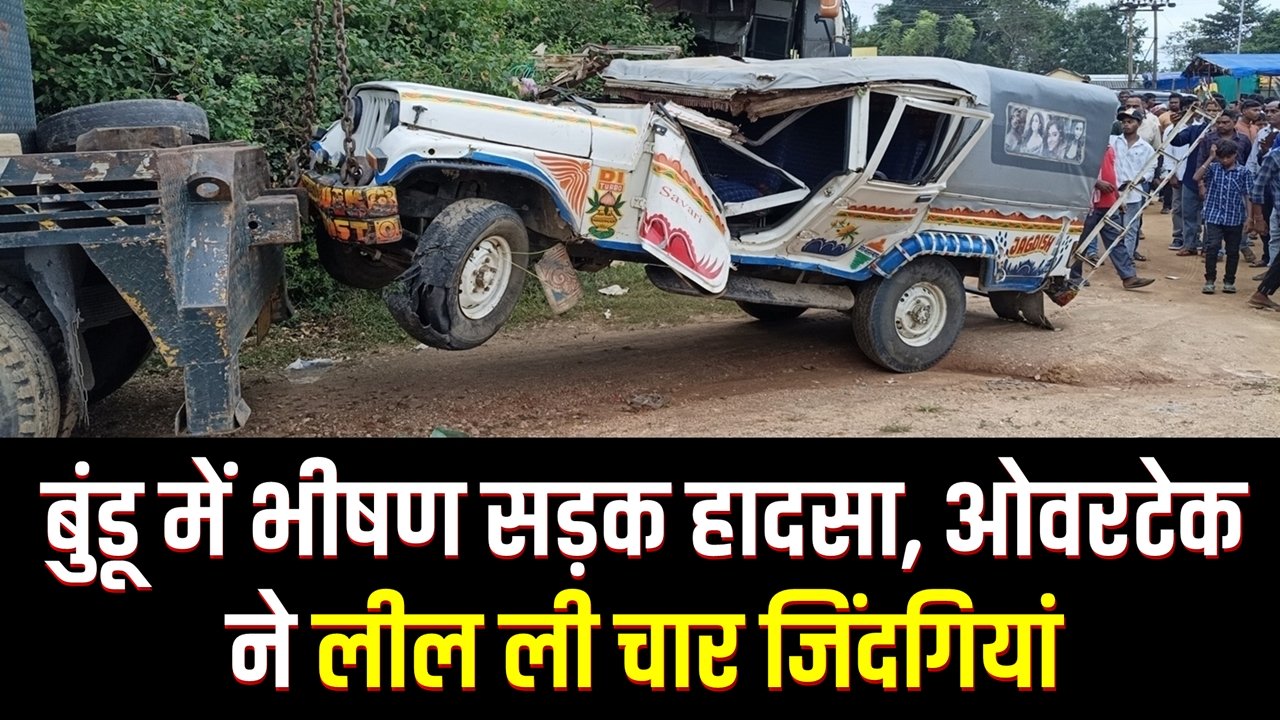 Ranchi. रांची के बुंडू थाना क्षेत्र के बुंडू टोल प्लाज़ा के निकट गोसाइडीह के पास पिक अप वाहन पलटने से चार लोगो की घटना स्थल पर मौत हो गयी। जबकि अन्य 23 लोग इस हादसे में गंभीर रूप से घायल हो गए। 15 घायलों को रांची के रिम्स में भर्ती कराया गया है, अन्य घायलों का इलाज बुंडू के सदर अस्पताल में हो रहा है। सभी लोग अड़की प्रखंड के गिरितबेते गांव से ताऊ मैदान, बुंडू में आयोजित आदिवासी जनाक्रोश महारैली में भाग लेने जा रहे थे। तभी बुंडू टोल प्लाजा के पास बस को ओवरटेक करने के दौरान पिक अप वाहन का टायर फट गया। जिसे तेज रफ्तार वाहन खेत में पलट गयी। उक्त महारैली कुड़मी कुरमी समाज को आदिवासी सूची में शामिल करने की मांग के खिलाफ आहूत की गयी थी।