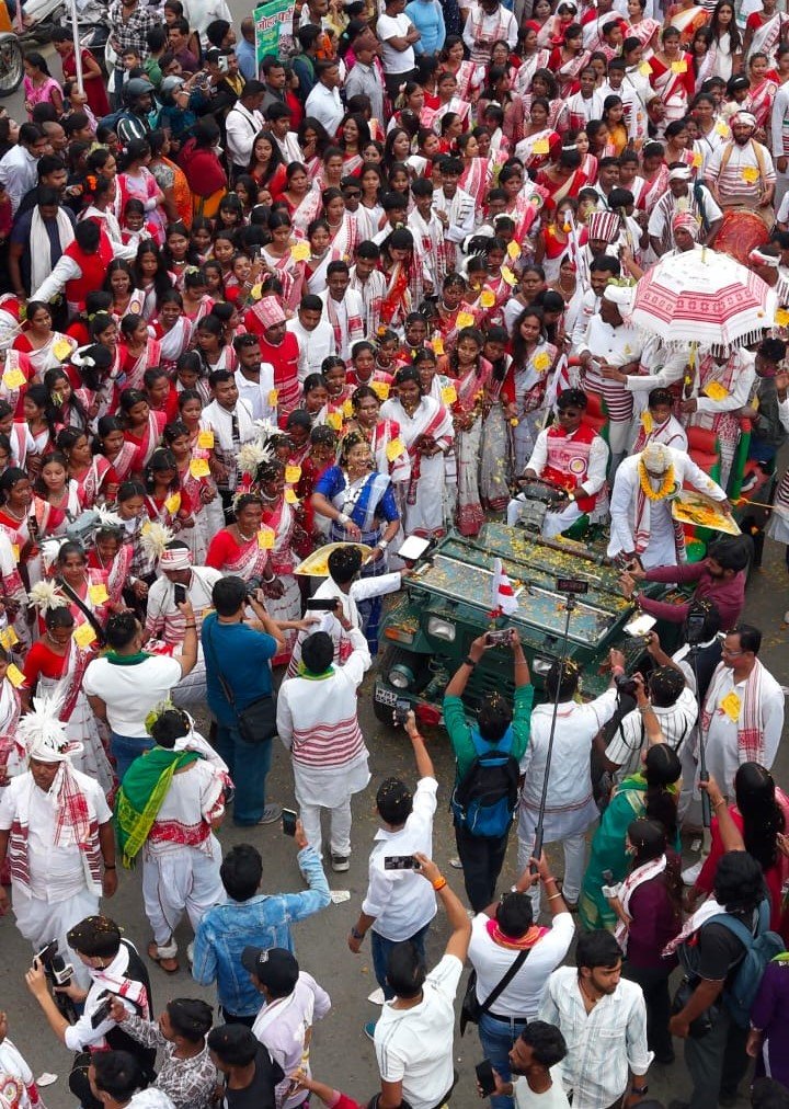 सखुआ (साल) फूलों से सजी झांकियां, मांदर-नगाड़ों की गूंज और पारंपरिक नृत्य इस शोभायात्रा का मुख्य आकर्षण रहे। ख़राब मौसम और बारिश के बावजूद शहर के प्रमुख मार्गों पर उमड़ी भीड़ ने इस पर्व की भव्यता को और भी खास बना दिया।