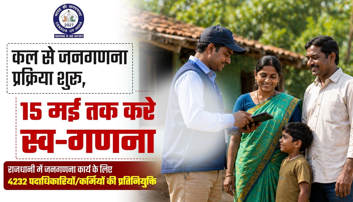 कल से जनगणना के प्रथम चरण की शुरुआत, 14 जून तक होगा मकान सूचीकरण एवं मकानों की गणना का कार्य, राजधानी में 4232 पदाधिकारियों/कर्मियों की प्रतिनियुक्ति, नागरिकों के लिए कल से 15 मई तक स्व-गणना की व्यवस्था